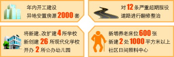 本报记者 蓝娜娜 本报通讯员 徐勇 2013年是市北区区划调整的开局之年,站在新的起点上,2014年,市北区将全力推动各项工作提速。市北区委书记惠新安称,2014年,将统筹整合资源优势,完善老城区基础设施建设,缩小南北差距,做优做美东岸老城区。 创新提升年,实现跨越发展 “2013年是区划调整后新的市北区融合发展的第一年,一年来,我们在推动融合中实现了新发展。”惠新安书记说,经过一年的努力,市北区在2013年年初顺利完成了机构合并、人员安置和资源整合,平稳实现了新区融合,取得了区划调整和经济社会发展双丰收。 为巩固“融合发展年”活动成果,市北区将2014年工作主题确定为“创新提升年”,突出抓好“一条主线、五大重点”,即以深入学习贯彻党的十八届三中全会精神为主线,重点提高经济发展质量效益,重点改善城区环境面貌,重点保障和改善民生,重点提高社会治理能力,重点加强领导班子和干部队伍能力建设,以改革创新的精神,推动经济社会实现科学发展、跨越发展。 产业转型升级,楼宇经济再壮大 2014年,市北区在经济方面将着力推进产业转型。在巩固提升传统优势产业的同时,加快高端服务业“十个千万平米工程”建设,壮大总部楼宇经济。完善推进楼宇经济工作机制,建立楼宇经济服务网络平台,年内新增商务面积40万平方米以上,新增税收过千万元楼宇5栋。 同时,加快青岛数字文化体验中心、奥润五星级酒店等旅游大项目及配套项目建设,高起点做好青岛一战遗址公园总体策划并开工建设。重点推进镇江路片区、抚顺支路片区等片区土地整理及焦化制气、海晶化工等企业搬迁。确保总投资约2000亿元的185个重点(前期)项目建设加快推进、早见成效,宝利商业、东建大厦等36个项目开工建设,凯景广场、青房财富地带等25个项目竣工投产。 初中、小学生免费穿校服 在民生方面,市北区重点着力推进棚户区改造,提升城区形象品质。全力完成大港纬四路以东、东安路等5个项目房屋征收收尾,加快推进榉林山片区、瑞昌路三角地等7个已启动项目房屋征收进程。适时启动广饶路两侧、鞍北一期等5个项目房屋征收,对上海路42号、温州路29号等47处危旧陋房进行维修加固。加快安置房建设,年内开工建设异地安置房源2000套。加快推进中心医院片、萍乡路52号等异地安置地块土地出让,加快推进吉林路泰山路、大水清沟等13个项目安置房建设,做好人民路285号和危旧房零星片改造项目约1000户居民的回迁安置工作。 在教育养老方面,市北区今年将新建、改扩建4所学校,新创建26所现代化学校,理顺学前教育管理体制,开办2所公办幼儿园,重点破解东部城区入学入园难题;为义务教育阶段学生免费配发校服,为低保家庭在校子女免费提供午餐,争创全国社区教育示范区。新增养老床位600张,新建2处1000平方米以上社区日间照料中心。新建1处6000平方米区级民生服务中心、3处1000平方米社区服务中心,打造100处邮政便民服务站,为居民提供更加高效便捷的服务。 12条道路翻修整治 今年,市北将对郑州路、北仲一路等12条严重超期服役道路进行翻修整治,进一步提高出行质量。对水清沟桥等5座桥梁进行维修加固,排除安全隐患,加强城市管理,提高城市保洁水平。新建唐河路、杨家群河岸2座垃圾收集站,不断提升垃圾收集转运能力。 将以青岛世园会举办为契机,对黑龙江路、哈尔滨路等30余条主次干道,啤酒街、海云庵周边等主要节点以及行政区界实施绿化、美化、亮化。对中央商务区、台东商圈等区域及杭州路、瑞昌路等道路两侧部分楼体进行夜景观亮化。综合整治4片老旧楼院,集中绿化25处庭院,绿化提升26条道路,对水清沟河、郑州路河、海泊河等河道进行清淤治理,努力打造水清、岸绿、灯亮、景美的城区环境。