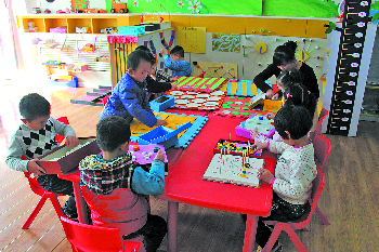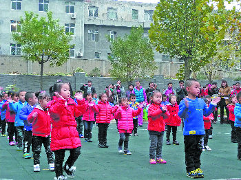 | 幼儿园的孩子们正做手工。 本报记者 李飞 摄 |  | ◥历下区一幼儿园孩子在室外活动。减免辖区适龄儿童保教费后,孩子们的学前教育更有保障了。