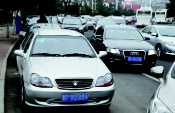 | 24日,环山路因为葡萄山小学开学堵得一塌糊涂。 本报记者 韩逸 摄 |