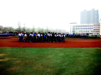 24日,市区依旧是雾霾模式,空气质量为重度污染。德州市政府已于22日启动了重污染天气应急预案,要求中小学及幼儿园停止户外运动。然而当日,市区一所中学的学生仍在户外活动。 本报记者 孙婷婷 摄