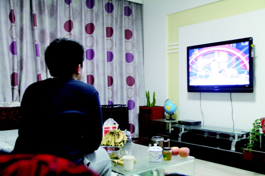 | 艺考结束的唐帅回到家后通过看电视来放松自己紧张劳累的心灵。 本报记者 谭正正 摄 |