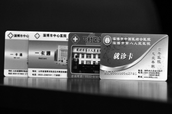 | 为方便市民就医,很多医院都推出了“一卡通”就医卡。 本报记者 王鸿哲 摄 |  | 不同医院的就医卡目前无法通用。 本报记者 王鸿哲 摄 |