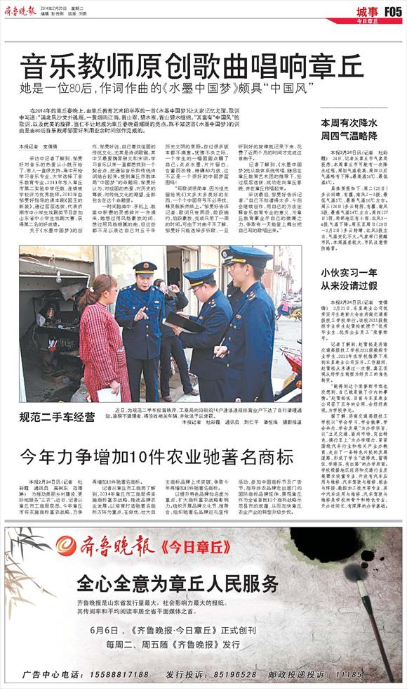 音乐教师原创歌曲唱响章丘