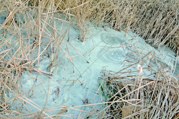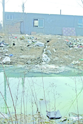 | 平房就是豆腐黑作坊,产生的污水直接排到截渗沟里,产生恶臭。 见习记者 王红星 摄 |  | 作为鱼塘主要用水来源的水沟被污染,水色发白,恶臭难闻。