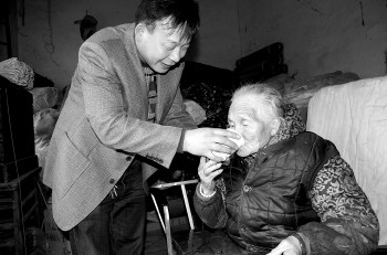| 王东在照顾老人喝水。 通讯员 郑友成 摄 |