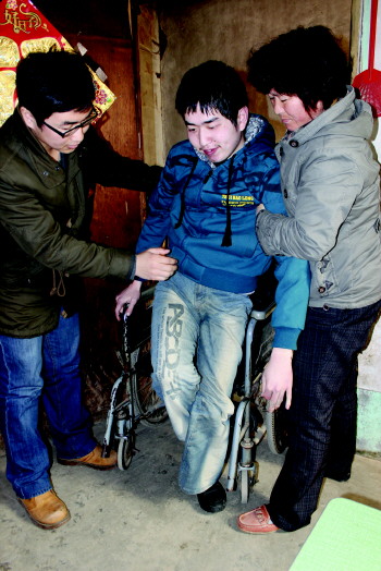 文/片 本报记者 周衍鹏 曹思扬 “我想站起来!求求你们帮帮我。”23日,家住即墨移风店镇朱家沟村的90后小伙朱新波向本报求助。朱新波说,他出生没几个月,就得了一种“怪病”:双腿不听使唤,无法站立走路。为治病,父母带他四处寻医,花光了家中的积蓄,借下不少外债,但最后得到的答复都是“无法确诊”。朱新波说:“我不需要资助,只想知道自己是什么病,什么地方可以治?我真的特别想站起来!” ◎“我叫朱新波,今年23岁,是即墨市移风店镇朱家沟村人……我真的特别想站起来!” 23岁小伙有个走路梦 23日,记者接到一位读者的求助电话:“我叫朱新波,今年23岁,是即墨市移风店镇朱家沟村人,因为从小得了一种怪病,从来没下地走过路。我不需要资助,只想知道自己得了什么病,什么地方可以治?你们能帮帮我吗?我真的特别想站起来!” 24日,记者驱车赶到朱新波的家中——一座4间瓦房组成的普通农家小院。记者见到了坐在轮椅上的朱新波:他的双腿向内弯曲着,左腿弯曲得格外明显,左眼有些斜视。见到记者进屋,朱新波的母亲罗桂花想搀起朱新波,但他的双腿根本不听使唤,即使脚已经着地了,也根本用不上一点儿劲。“能感到疼,就是控制不了腿的动作。”朱新波说,他的左手还经常发麻,左眼也看不清,有时候还会头疼。“从出生到现在,一直都是这个样。”看着轮椅上的儿子,罗桂花的眼中噙满了泪水,为了弄清孩子到底得了什么病,“什么法儿都用了,还是没闹明白!” ◎“两条腿一直不停地打转儿……就连看人的眼神儿也有点不对。” 以为“发育晚”孰知患怪病 1991年5月28日,朱新波出生在即墨移风店镇朱家沟村一个普通的农民家庭里,他的降生一度给这个平静的农家小院带来无尽的欢声笑语。然而好景不长,朱新波的父母渐渐发现,自己的孩子好像与别人家的孩子有些不同。原来,正常的孩子出生满3个月时,基本上都会抬头或翻身了,而朱新波连头都抬不起来,更不用说翻身。当时,父亲朱旭良和母亲罗桂花一直沉浸在初为父母的幸福喜悦中,心里虽然有些纳闷,但并没有太在意,只是觉得自己的孩子比别的孩子发育晚点儿。等孩子长到8个月大时,朱旭良夫妻发现,孩子“发育晚”的情况非但没有好转,甚至还出现了一些新的状况。 “两条腿一直不停地打转儿,还不能正常伸直,就连看人的眼神儿也有点不对。”罗桂花回忆说,这让他们夫妻俩的心里开始打鼓,再也坐不住。惴惴不安的朱旭良夫妇带着8个月大的儿子,开始四处求医问诊。 ◎“中药、西药,都吃了一大堆,最后一点用也没有。” 9年寻医路换来“无法确诊” 虽然当时家中并没有多少钱,但朱旭良夫妻还是带着儿子直奔青岛市的大医院。“给孩子看病,还是到大医院放心。”罗桂花说,他们先后带儿子去青岛市妇女儿童医院、青大附院、401医院做过检查,但都没能查出孩子到底是得了什么怪病。“当时给孩子的腰和腿都拍了X光片,还做了脑部CT,但大夫都说没检查出问题,怀疑可能是缺钙,建议我们回家给孩子多补补钙。”可是回家后,朱新波不知吃了多少钙片,但根本就没有任何效果。 “在青岛的大医院没看出什么结果,我们又听别人说,平度、莱西有些小医院能治这种病,所以我们又带孩子去那边看病。”罗桂花回忆说,从孩子8个月大开始一直到9岁,他们夫妻两人已经记不清去了多少家医院,看了多少个大夫,但换来的都是一句“无法确诊”。心存希望的罗桂花夫妇还是不想放弃。此后已经有些“病急乱投医”的两人,抱着儿子不停地出入一些“小医院”求助,甚至其中很多就是一些私人诊所。 “中药、西药,都吃了一大堆,最后一点用也没有。”罗桂花说,为了给儿子治病,他们几乎跑遍了青岛的所有医院,到底花了多少钱,两人都已经记不清了,但直到现在,他们也无法确诊儿子到底得了什么病。 ◎“无论主持人还是记者,都能帮助有困难的人,都是很神圣的职业。” “我想站起来” 朱新波的父母白天需要去地里干活,他的妹妹要去上学,一天中的大部分时间,朱新波都是独自待在家中:看电视、听广播。“我的普通话就是跟着电视里的主持人学来的。”朱新波说,因为以前治病时说方言,很多医生都听不懂,“说好普通话才能把病情跟医生说清楚,才能治好病。”为了让儿子与外界有更多的交流,罗桂花还特意给儿子买了一部手机,朱新波的生活也多了一项内容:用手机上网看新闻。 由于不能上学,朱新波只能在家里自学,23岁的他能写出的字并不多。采访临近尾声,记者拿出采访本,想让朱新波写下最想写的几个字。朱新波思考了几分钟,一笔一划地用力写下“我想站起来”五个字。尽管他的手握笔时不停颤抖,也记不准笔画,但还是很努力地写完。朱新波说,他一直坚信自己有站起来的那一天。 朱新波经常设想,如果他没有得病,像正常人一样按部就班上学、参加高考,他最想考上中国传媒大学,然后做一名主持人或者记者。“无论主持人还是记者,都能帮助有困难的人,都是很神圣的职业。”朱新波说,现在的他只想弄清楚自己得了什么病,什么地方可以治?