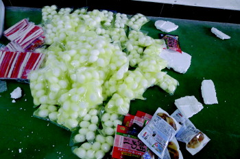◥检疫人员从来自日本的邮包中截获大量禽蛋产品。 (图片由检验检疫部门提供)
