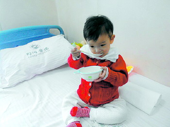 本报武汉2月26日讯(记者 王茜茜 见习记者 陈晓丽 韩东旭) 26日中午,武汉当地市民韩娜听说早早的情况后,来到病房,为早早带来了礼物和捐款。早早在武汉住院治疗的事情,经过当地媒体的报道,已经引起了不少武汉市民的关注。 把手里的礼物递给早早后,韩娜对张玲玲说道,“我也是一位妈妈,特别能理解你现在承受的压力,我也只能做一点能力范围内的小事,让早早知道,这个社会还有很多人都在关心着她。”临走时,韩娜又塞给张玲玲一些钱。“这是一点心意,希望早早能够早日康复。” 还有一位市民给早早送来了一条小金鱼,并亲手折了千纸鹤送给早早,“这些礼物都不贵重,千纸鹤代表了我的祝福,希望早早在武汉能治好病,健健康康地回山东。”小金鱼在鱼缸里欢快地游来游去,早早瞪着眼睛,坐在病床上好奇地看着。 26日下午2点,早早被带进灌肠室。从灌肠室出来,早早软软地趴在妈妈怀里,但是并没有哭闹。“有没有哭啊?”当记者问早早时,早早低着头小声地说了一句,“哭了。”但是当记者把玩具拿到早早面前时,早早立即又露出了笑容。 下午4点左右,爸爸尹博拿着缴费单子走进病房,“这才一天,就花了3860元。”尹博说,每次灌肠要花200元,早早每天都需要做一次。此外,早早的奶粉也换回了300多元的桶装奶粉。“医生说,这种奶粉对调理早早的肠胃功能更好,建议我们最好把奶粉换回来。” 据张玲玲统计,截至26日晚7点,早早收到爱心捐款共计222100元。而临沂的“小希望”公益组织也在为早早的捐款积极筹划,并向上海某公益组织递交了募捐申请。但按照募捐程序,捐助申请需写明捐款定额,而早早的病情仍需做进一步检查,捐助申请暂需等待一段时间。 对此,张玲玲表示:“这段时间真是麻烦大家了,大家对我们的关照我们都特别感激,除了说谢谢,我们也不知道该怎么回报。现在早早在慢慢调理身体,具体治疗方案还要再看情况。关于早早的消息,我们一定及时告诉大家,不辜负所有人对我们的关心!”