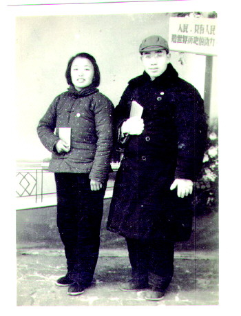 这张照片是1967年农历腊月廿九(小月没有三十)大年除夕在禹城县莒镇街照相馆照的,距今已有四十七个年头了。 当时,我在禹城县革委会政治部工作。那场“史无前例”的运动正如火如荼地进行着。在机关“坚持”近两个月后,我向组织请假,骑自行车去看望70华里外在莒镇公社当小学教师的妻子。住了两天,正值大年除夕,按当时县革委会规定:过年不放假,要求全体干部在机关过一个“革命化”的春节。早饭后,我搬出自行车,整理行装准备回县革委会机关上班,望着妻子无奈、复杂的眼神,我心里明白:春节毕竟是我国传统的合家团圆的日子,相隔千里的人们也在这一天尽量赶回来过年,我却…… 面对我违心的说教,身为共产党员的妻子黯然一笑,平静而坚定地说:“老刘,甭讲大道理,我心里明白,咱是党的人,得听党的话,我不拦你。不过,咱俩结婚时也没照过正儿八经的结婚照,这几年,照相也不多。今天是除夕,明天是大年初一,咱去照张革命化的春节照,算过个革命年吧!” 我欣然同意,等赶到街上照相馆时,人家已关门准备回家过年了。我仗着脸熟好说歹说人家才答应给照。我们夫妻俩站在布景前,照相师傅很快调好焦距,冲着胸佩像章、手捧“毛主席语录”的我俩摁下了快门儿。