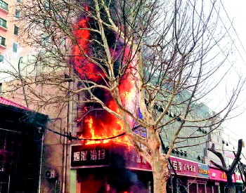 本报96706热线消息(见习记者 戚云雷 实习生 樊鹏莉 邵裕茗) 26日上午8点半左右,和平路一处临街商铺的三楼突发大火,屋内几乎被烧光,火灾殃及二楼及旁边一家美容院,所幸未造成人员伤亡。 26日上午9点,记者来到和平路40号火灾现场,此时大火已经被基本扑灭,不过还有黑烟冒出,二楼三楼被烧得黑乎乎的。从火灾现场淌出的水顺着旁边的楼梯往下流,俨然成了“水帘洞”。 “8点半我出门买菜时刚好路过,看到从窗户里蹿出了火苗,还有很多烟。”家住附近的王女士说,起火的地方是三楼一家公司的办公室,当时里面应该有人在上班。 记者看到,商铺共三层,二楼三楼的窗户已经被大火烧得只剩骨架,一楼地面上散落了很多玻璃碎片。一楼的烟酒超市也暂停营业。 附近商户告诉记者,他们也是听说着火了才跑出来看的,火灾发生时并未听到任何声音,所幸大火很快被赶来的消防人员控制住。 据了解,火灾发生后,市119消防调度指挥中心快速反应,调集了3个中队6辆消防车40名官兵到场灭火。从接警到灭火仅用了20分钟。随后,记者从消防部门了解到,起火部位为三楼的某单位办公场所,现场无人员伤亡。目前,火灾损失和原因还在调查中。