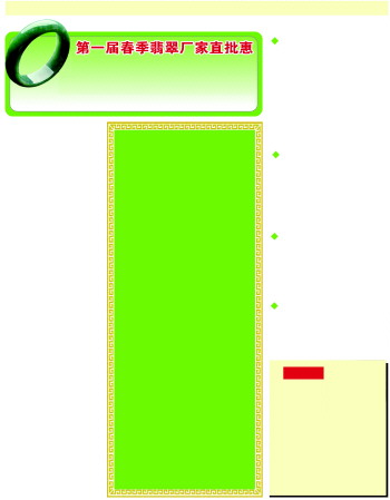 ■一折批发价买翡翠!砍掉所有中间环节!全场翡翠只有您不敢想象的超低价!惊爆价!欢迎市民前来选购! ■买就送!每天前100名消费顾客赠送精美礼品一份,全场翡翠49元起,样样保证A货,配备中维质检珠宝玉石质量检测中心证书。让您买得超值、买得放心!