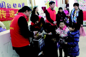 近日,在潍坊市英煌国际幼稚园,小朋友捐出了自己的爱心款。为了让小朋友学会互相关心,幼儿园组织了小朋友向潍坊青年志愿者服务中心的捐款活动,幼儿园的小朋友将自己的一部分压岁钱捐出来,500名小朋友共捐出了7000多元的爱心善款。