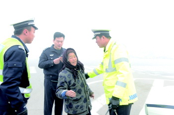 2月26日早上8点左右,正在海曲东路与北京路路口执勤的直属大队民警,发现路口一位老人在车流中徘徊,于是赶紧上前将其带到安全位置。经询问,该老人要到东港区法院办理业务,因很少进城,又遇到大雾天气,竟然迷了路。怕老人再迷路,于是民警用警车将老人送到了目的地。