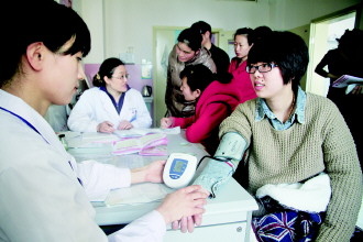 26日,威海卫人民医院的大夫正在为准妈妈进行心率检查。据医院工作人员介绍,生马宝宝的准妈妈出现扎堆产检情况,医护人员建议尽量提前两个周左右到医院预约。