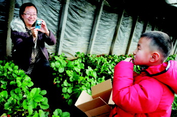 本报3月2日讯(记者 代曼) “看看谁摘的草莓大。”3月1日上午10时许,本报采摘团成员刚刚到达位于福山区门楼镇的采摘园,十几名小读者们化身小勇士,在采摘园内来了一次“草莓探险”,摘草莓学常识,看看谁的收获多。 本报开展的草莓采摘活动,让不少小读者乐坏了。“我们上周就报了名,这回终于能来了,孩子特别开心。”读者吕花蕾说,家里对草莓采摘兴趣最大的就是4岁的宝贝了。记者注意到,参与活动的读者大都是带着孩子的一家人,在有的家长读者看来,到大棚内摘草莓,不仅“新鲜看得见”,还可以让孩子增长知识。 “草莓身上黑色的点点就是草莓的种子”。在进大棚之前,采摘园“园主”先给小朋友们上了一堂自然课,告诉他们红红的草莓是从哪里出来的。学完了知识,就到了和草莓亲密接触的时候,“前面有蜜蜂,我不敢走”。“妈妈,这里有红草莓”。“爸爸,这个草莓太大了,摘不下来”……草莓园内,采摘团的爸爸妈妈们陪宝贝一起来了一次“草莓探险”之旅。 1岁的麦兜成了“探险团”中最小的“勇士”,虽然还不会说话,但看到田垄上伸展出来的红红的草莓果实,小家伙兴奋地咿咿呀呀起来。“妈妈帮我。”2岁的叮当看到脚下有个大草莓,寻找起外援来,大草莓终于到手,叮当一下子就塞进来嘴里,顾不得擦嘴边的红色果汁,就忙着去寻找下一个目标了。 小勇士草莓田中寻宝贝,妈妈拎着篮子做助手,爸爸们拿起相机记录着宝贝成长的瞬间。“我们下周还想带着孩子来参加摘草莓的活动。”读者闫女士说,采摘草莓的过程可以和孩子进行有效的互动。不到一个小时,不少“小勇士”们已经捧出满满一箱子草莓了,看到孩子不过瘾,有的家长专门带了几棵草莓苗离开,想将这次奇妙的草莓之旅延续到家。 看着孩子吃得开心,家长也忙着给孩子拍照。 本报记者 李泊静 摄 相关新闻 三八节,带她一起摘草莓吧 “我要把草莓带给妈妈吃。”3月1日采摘活动中,小读者瑞瑞和爸爸一起摘了一箱子草莓,要带回去给还在加班的妈妈,“妈妈太累了,草莓都留给妈妈。”瑞瑞爸爸告诉记者,3月8日妇女节的时候还要再来一次,“瑞瑞要亲自给妈妈摘草莓。” 天气越来越暖和了,想走出家门的愿望也越来越强烈,本报草莓采摘活动开展以来,不少读者打来电话报名参与。这周六马上迎来三八妇女节,不少读者打来电话预约,想在3月8日和妈妈一起参加活动,市民赵女士告诉记者,母亲今年已经72岁了,出门游玩的机会不多,很想带着她在妇女节这天出来踏青郊游。 和家人一起采摘收货,分享快乐,成了很多读者的心愿。考虑到读者的需求,本报将于3月8日(周六)开展第三期草莓采摘活动,带着你的妈妈,带着你心爱的她,一起来摘草莓吧。报名热线:18615359061。 本报记者 代曼