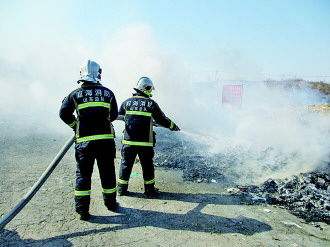 2日上午,文登宋村镇寺前村西路边发生火灾,龙山消防中队出动2台车14人赴现场,一组消防队员用水枪喷淋,另一组消防队员用铁锹铲土埋压,大火被扑灭。春干物燥,警方提醒要防患未然。
