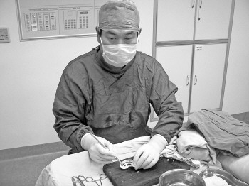 | 苏法仁正在雕刻自体肋软骨支架。 |