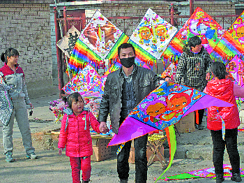 天气转暖,不少市民到百脉泉广场上放风筝。一销售风筝的摊点挂满了形态各异的风筝。这些风筝价格从5元到60元不等,许多带孩子游玩的市民纷纷驻足购买风筝,风筝销售日渐火了起来。 本报记者 支倩倩 摄