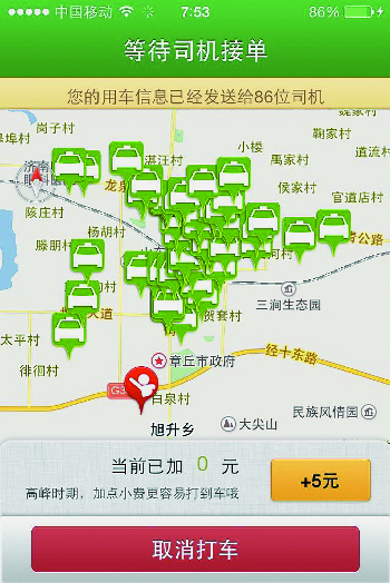 | 手机页面显示,有86位出租车司机安装了打车软件。 |