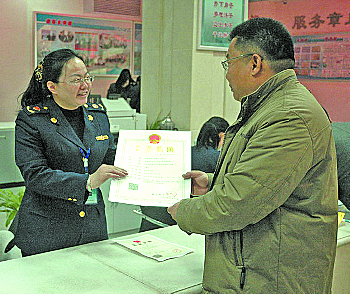 | 市民在办理新版营业执照。 本报记者 杜彩霞 摄 |
