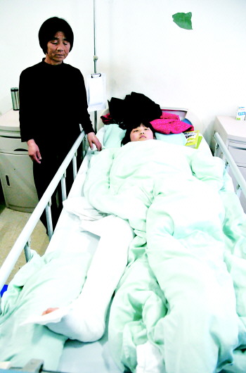 治疗费用,是亲戚朋友筹集的 “孩子的父母没有固定工作,这几天的住院治疗费用都是从亲戚朋友那里借来的。”小雪晴的奶奶韩纪兰说,虽然家庭贫困,但懂事的孙女从来没有半点埋怨过。 为了分担父母的压力,小雪晴不仅能够照顾好自己,还时常放学回家后做饭、洗衣服。为了给小雪晴治病,雪晴的亲戚朋友也是伸出援手,才终于凑足了初步的住院费用,目前治病花费的3000多元钱都是借来的。 “住院当天,医生诊断后决定采取保守性治疗,用绷带将孩子的腿固定了起来。”韩纪兰说,医生嘱咐她患者骨折后的72小时,是疼痛最强烈的时候,一定不要让小雪晴右腿乱动。 令全家人吃惊的是,懂事的小雪晴并没有哭闹,还不时安慰为自己担心的父母和奶奶。“孩子喜欢看书,疼得厉害时就翻开书本。”韩纪兰心疼地说。骨折后,需要补营养,由于家里实在拿不出多余的钱来,小雪晴的营养根本无法保障。 “今天上午,我从家包了些肉馅水饺,熬了点黄豆粥,给孩子吃。”韩纪兰感觉对孩子非常愧疚。但小雪晴在吃饭上从来没有挑剔过。“为了给我治病,家里已经花了很多钱,而且奶奶每天照顾我也很辛苦。”小雪晴说,她最大的愿望就是赶快好起来,回到学校和同学们中间。