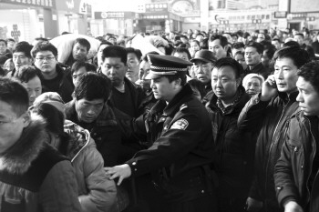 | 3日,德州火车站安检升级。在火车站候车厅内,身穿制服的民警在进行安全疏导。 本报记者 王小会 摄 |