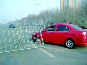 本报3月3日讯(记者 董传同) 3月3日上午8点左右,在东风路澳德乐附近,一辆红色轿车变道时不慎将10多米护栏顶了出去,对面行驶的出租车也受到了护栏的剐蹭。 “我顺着拥堵往东看,发现前方的护栏被一辆红车撞断,挤占了自西向东方向的两条车道,造成了拥堵。”交警直属二大队市中中队民警李占华说,上午8点左右,他正在澳德乐附近路口执勤,发现东风路上自西向东行驶的车辆排起队。他立即拨打了122报警,同时及时疏导拥堵的车辆,避免二次事故发生,等待救援车辆。 事故现场,一辆红色轿车将10多米护栏撞断顶出,护栏顶出去的部分成了三角形,占到了两个车道。红色轿车左前方的轮胎立刻爆掉,保险杠撞坏,左前方外壳破裂。 据了解,红色轿车的司机张某驾车自东向西行驶,因为想在前面东风路与康博大道路口掉头,他从第二条车道左打方向盘变更到最里面靠近护栏的车道上,谁知因为车技欠佳,一下就顶到了护栏上,车顶着护栏向左前方移动了四五米。 这时一辆出租车自西向东正常行驶至护栏处,被顶出来的护栏蹭坏了左前方的后视镜,左边的两个车门也被刮花,真是祸从天降。“我当时在第二条车道上行驶,护栏一下子就弯到我这里,躲都没法躲,够倒霉的!”出租车司机说。 张某是今年1月份刚刚拿到驾驶执照,属于实习期,技术不是很熟练,“我也不知怎么弄的,想左拐竟然顶到了护栏上,反应不过来了!”张某称。