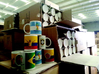 | 海关查获的侵权2014年世界杯标志的马克杯。陈之焕 摄 |