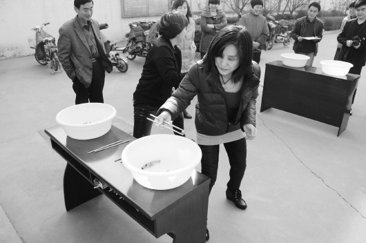 为加强社区对女同胞的特别关爱,同时丰富社区居民的业余文化生活。2日,市东街道办事处郭集社区举办了五项趣味比赛活动。此外,社区还为参赛人员准备了小礼品。图为社区居民在夹玻璃球。