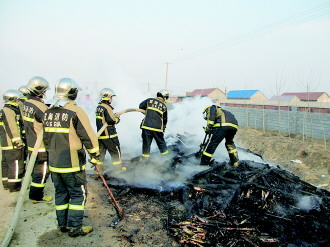 继2日上午宋村镇寺前村发生火灾后,当天下午4时许,文登侯家镇小洛村边又发生一起柴草场火灾。龙山消防中队再次出动2台车、14名队员赶赴现场,用水枪和农具将大火扑灭。火灾起因是村民烧荒,引燃草场。