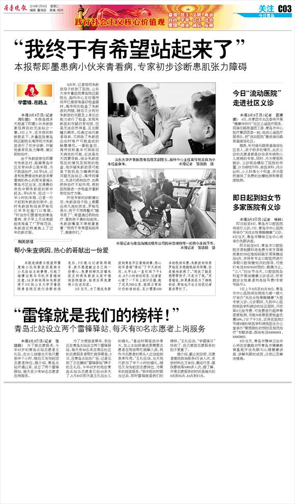 本报帮即墨患病小伙来青看病,专家初步诊断患肌张力障碍
