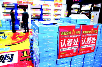 本报济宁3月5日讯(记者 马辉) 进入3月,空调逐渐进入热销期,然而今年节能补贴、家电下乡等政策纷纷取消,各大空调厂家为了抢占先机,纷纷加大投入,“成套购家电享优惠”的促销方式备受消费者青睐,在促销战的首周博得头筹。 “一晚只用一度电”、“节能省电除甲醛”、“认筹50元抵1000元”……5日,在九龙等家电卖场的空调销售专区,各大品牌促销的势头很猛。“今年像节能惠民补贴、家电下乡等补贴政策全部没有了,空调价格较往常有所回升,但是反映到市场上,厂家为了争夺开春市场,纷纷加大优惠力度,上市价格和去年相比变化不大。”九龙家电一位宁经理告诉记者。 “我准备4月底结婚,想着选购一些家电,现在正好是空调促销旺季,而成套的家电优惠力度更大,所以准备选个性价比最高的品牌。”正在选购家电的市民陈国峰告诉记者,他打算借着这次机会,一次把结婚用的家电全部买全。宁经理告诉记者,有成套家电的品牌显然更有优势,以海尔、美的等品牌为例,涵盖冰、洗、黑等品类,除了空调本身有优惠,加上套购的一些赠品,优惠幅度还能再降10%左右。 记者走访了解到,每年2月底、3月初是空调市场启动首轮促销战的时间节点,本轮促销由美的、海信、海尔等品牌率先加入,预计格力将于4月份启动促销。促销启动一周以来,价格在两三千元左右的挂机和四五千元的柜机成为销售主流,此轮促销整体降价幅度在10%左右,二三级能耗的节能产品最受青睐。