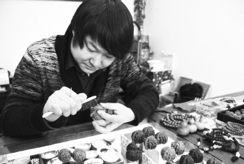 “掌上旋日月,时光欲倒流。周身气血涌,何年是白头。”乾隆皇帝的这首诗,把文玩核桃的境界描述得淋漓尽致。 诗中所说的“掌上”能“旋日月”的核桃,并不是平时大家常吃的核桃,而是核桃迷把玩的麻核桃。 在济宁,也有一群热爱把玩核桃的核桃迷,每到周末就会齐聚在古玩市场,淘一淘心仪的核桃、聊一聊盘核桃的经验。33岁的陶涛就是其中一位,因为热爱文玩核桃,他甚至放弃了做了8年的服装生意,专心投入到文玩核桃的事业中。 在陶涛的核桃店里,摆放着大小、颜色不一的配对核桃,外行人咋一看还真看不出啥门道。对于核桃迷来说,每一颗核桃的高度、宽度、质地、颜色、形状甚至棱角都大有讲究,两颗核桃因为这些系数的细微差别,价格就可能相差几千甚至上万元。 “狮子头、官帽、虎头、公子帽,这是有名的四大名核。一般来说,个头越大、配对感越好的核桃价格越高。”陶涛手中拿着一对高4.5厘米、颜色纹路均一致的核桃,这对核桃可谓是店中的镇店之宝,目前已以2万多元的价格被顾客预订。 核桃迷口中常说的“盘核桃”,就是用双手不停摩挲核桃,让核桃的颜色由浅变深,最终形成老红色。“三分盘、七分刷,一边盘核桃还要一边用小刷子刷核桃的缝隙,让手里的汗液浸透在核桃中,让颜色更加均匀有质感。”陶涛说,盘的过程中不经意间就能发现核桃色泽发生变化,把玩人会觉得很有成就感,这也是让核桃迷热衷把玩的原因之一。 核桃迷的内行中有这样一个不成文的规矩,就是把玩时一对核桃在手掌中不能碰撞、摩擦出声音,这不仅是要保护核桃天然的形状、防止磕碰,也是内行人所重视的“雅玩”。现在的年轻人,越来越喜欢喜欢这种“雅玩”,很多年轻人愿意买上一对核桃回家送给老人,把玩核桃中让老人周身活络、强健身体。 每年七八月份的核桃成熟季,热衷文玩核桃的人会到河北涞水县买树,很多人一买就是三四棵。陶涛去年花15万买了三棵树,最终只配出来300多对核桃,而能卖出好价钱的精品只有100多对,尽管这样,像陶涛这样的核桃迷依然痴迷与把玩、收藏核桃。