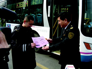 | 温馨巴士公司颁发奖励表彰宋智宏的义举。周延鹏 摄 |