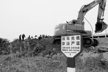 “国防光缆、通信线路,不管是在民用方面还在军事方面都发挥重要作用,希望大家一定要树立维护线路安全的意识。”6日,日照传输局工作人员对一名挖掘机司机说。