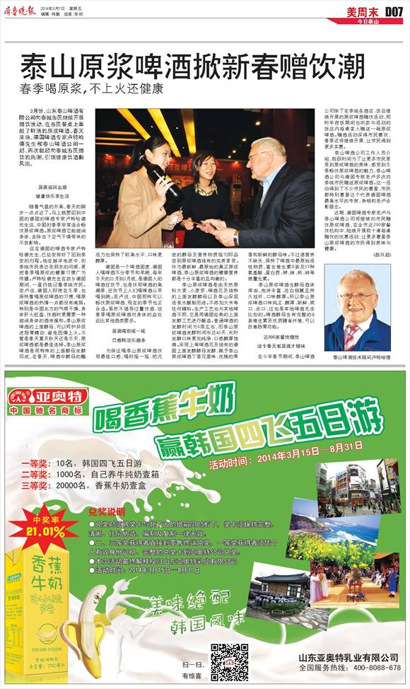 泰山原浆啤酒掀新春赠饮潮