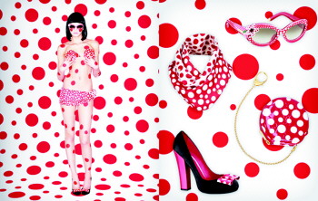 说到艺术与时尚跨界,不得不提的是现年已经85岁的日本当代前卫艺术家草间弥生,草间弥生是目前日本仍在世的伟大艺术家,也是人们口中的“精神病患者”。由于她儿时罹患神经性试听障碍,从幼时起就生活在精神病疗养院,直到今天。神经性试听障碍让草间弥生看到的世界永远布满了斑点状的网,这些彩色的无穷无尽的圆点,令人混淆了真实与虚幻的空间,给她带来了晕眩和迷幻的错觉。1939年起,她便将这些鲜艳的波点图案覆盖在一切物品上,那些看似普通的玻璃杯、金鱼、花朵、大南瓜变得艺术起来。后来草间弥生还将这些波点元素运用到布料、树木、房间、雕塑、服装设计上,这种装饰性极强的绘画作品被评论家认为:包含了女权主义、极简主义、超现实主义、原生艺术、波普艺术和抽象表现主义等。 2006年,草间弥生结识了路易威登艺术总监Marc Jacobs,开始了与路易威登的合作,她也成为了第一位与路易威登进行系列产品合作的女性艺术家。2011年,路易威登的经典皮具、成衣、鞋履、配饰、腕表以及珠宝,都化身为草间弥生有机重复图案的载体。产品采用充满活力的混合色彩,上面布满了无限延伸的圆点图案。尺寸、色彩以及密度的交相辉映充分展示了无限的可能性。服装、鞋、手袋和饰品的黑色、明黄、大红等颜色,和充满迷幻色彩的无数波点,让路易威登的产品有了强烈的视觉冲击,艺术总监Marc Jacobs也表示:此次路易威登与艺术家的合作成功增加了草间弥生及其当代艺术的观众,再次确立了时尚奢侈品牌的大佬地位。