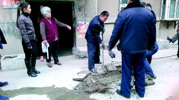 | 城肥二处工作人员在清理化粪池。 见习记者 魏新丽 摄 |