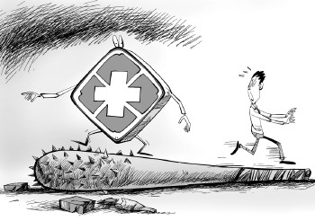 希望儿子学医,从事医疗行业,却遭到了明确拒绝。因为儿子看到自己上班很辛苦,从小到大很少陪他,还经常碰到医闹,让他觉得医生是一个“高危”职业。全国人大代表、阳春市人民医院妇科主任熊锦梅的亲身经历,从一个侧面反映了紧张的医患关系,以及这种情况对一个行业造成的负面影响。(3月13日《南方农村报》) 漫画/勾犇