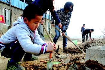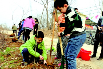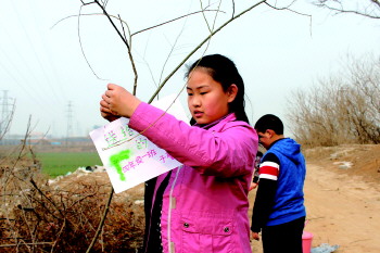 本版图片由本报见习记者 任丽媛 摄 本报3月13日讯(见习记者 任丽媛 实习生 高凤林) 扛上铁锹、拎起水桶,植树去喽……9日,在植树节到来之际,本报高新小记者团发起了“种植低碳林,义务去植树”活动。来自高新区各个学校的小记者们纷纷与家长一起带着工具,来到村外村生态园亲手种下了代表绿色低碳的小树苗,作为送给今年春天的一份礼物。 9日上午9点半,来自山师附小雅居园校区、高新区一实验、山师附小齐鲁合作学校等高新区多所学校的本报高新小记者,与家长们来到高新区村外村生态农场。他们有的拎着水桶,有的扛着铁锹,还有家长把家里的镐都带来了,“孩子听说要植树可兴奋了,前两天就跟我约定今天陪他来植树。”家长王先生说。 来到约定植树地点后,小记者们就迫不及待地表示要亲手种一棵树苗。“这些矮的是柳树苗,种在西边;那些高的直的是杨树苗,种在东边。”村外村生态园农场负责人孙先生给小记者们分配好了任务。小记者们有的挑选树苗,有的用铁锹挖坑,有的拿水桶提水,忙得不亦乐乎。 家住牛旺小区的小记者王瑞霖早早地就和妈妈出发来农场,“这是我第一次参加植树活动,说实话还真有点累,但想到植树既能美化环境,自己还体验了生活,就不觉得累了。”王瑞霖说。“把坑挖得深一点儿”“多浇点水”“用脚把土踩结实了”……家长一边指导,一边与孩子们一起种起了树。 用铁镐刨土,拿铁锹挖坑,用水桶提水……经过一阵子的忙活,小记者们额头上渗出了汗珠。一会儿工夫,30多棵树苗已经全部种上,小记者们看着自己的劳动成果,纷纷拍照留念,用镜头记录下这个瞬间。第一次参加植树活动的小记者李硕意犹未尽,“妈妈,咱们再种一棵吧。” 小记者于馨宁还特地为自己种的小树挂上了“标签”,上面写着“送给春天的礼物”。于馨宁说,“植树真的很重要,要不然世界就会变成荒漠。下次植树活动,我一定还会参加。” 亲手栽下 一棵树 □小记者 冯佳冉