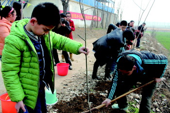 春天来了,9日上午,小记者们来到了高新区村外村生态园农场参加植树活动。 小记者们一到,植树活动马上开始了。大家挥动着铁锨开始挖树坑,树坑直径约40厘米。这可是个力气活,你看大家一个个满头大汗却干劲十足。挖好树坑后,放进树苗,培土、浇水。大家干得热火朝天,分享着劳动的快乐。 农场叔叔为我们准备的是垂柳和杨树树苗。这两种树苗的成活率高,适合咱们济南的气候和土壤环境。清明左右,我们就能看到它们绿色的枝丫了。 树木可以净化空气,降低风沙、制造氧气,还是除菌能手。我们济南的空气质量不乐观,我们要为我们的蓝天贡献一分力量。植树造林从我做起,美化泉城人人有责。 我为春天 添绿衣 □小记者 邢栋