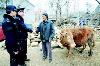 | 民警为高玉柱追回被盗耕牛。 |