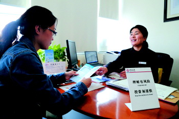 余额宝收益率下降后,银行理财产品销售更加红火了。 本报记者 韩逸 摄