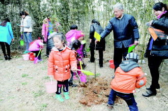 12日,枣庄市现代幼儿园的50多名小朋友来到光明广场附近植树,30多株树苗在家长和老师的帮助下很快有了“新家”。 本报记者 杨霄 摄影报道