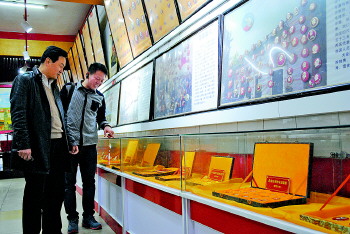 | 博物馆领袖风采厅内,李传递(左)给参观者讲解红色文化知识。 |