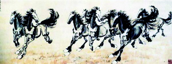 □马年说马 在中国现代绘画史上,徐悲鸿的马独步画坛,无人能与之相抗衡。在他个人的艺术成就中,也以画马的成就最为卓著。 徐悲鸿对马的肌肉、骨骼以及神情及动态,做过长期的观察研究。早在巴黎高等美术学校学习期间就常常去马场画速描,三、四十年代又画了许多速写,对于马的动态、结构、习性均了如指掌。经过千锤百炼,他还成功解决了笔墨和马的块面结构如何和谐一致的问题,得心应手地塑造出马的形象。 徐悲鸿在《徐悲鸿覆问学者的信》中强调:“我爱画动物,皆对实物用过极长时间的功,即以马论,速写稿不下千幅,并学过马的解剖,熟悉马之骨架,肌肉组织,夫然后详审其动态及神情,方能有得。” 徐悲鸿笔下的马千姿百态,或奔腾跳跃、回首长嘶、或腾空而起、四蹄生烟,不仅外形逼真,而且神态生动,徐悲鸿画马是以魏碑兼草隶的笔意准确、凝练地勾勒出躯干,以极具古籀金石气的短而劲的线条奠定神韵之骨架,继而用浓淡有度的水墨,以类似西洋绘画的笔触融合传统绘画的手法,将马的肌肉和质感以及骨骼的结构表现得既合物理、物情又合物态。 在其《八骏图》中,徐悲鸿运用饱酣奔放的墨色勾勒头、颈、胸、腿等大转折部位,并以干笔扫出鬃尾,使浓淡干湿的变化浑然天成。马腿的直线细劲有力,犹如钢刀,力透纸背,而腹部、臀部及鬃尾的弧线很有弹性,富于动感。整体上看,画面前大后小,透视感极强,前伸的双腿和马头有很强的冲击力,似乎要冲破画面,成为这位艺术大师的不朽名作。 (马茜) ▲《八骏图》 徐悲鸿 ◥徐悲鸿(1895-1953年),画家、美术教育家。汉族,江苏宜兴人。曾留学法国学西画,归国后长期从事美术教育,先后任教于国立中央大学艺术系、北平大学艺术学院和北平艺专。1949年后任中央美术学院院长。