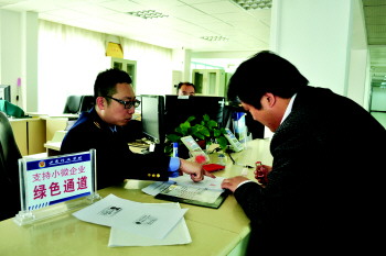 注册资本登记制度改革实施后,咨询办照的人数量激增,乐陵市工商局开设专门登记注册窗口受理咨询。3月13日,工作人员为市民提供指导。 刘凯 摄