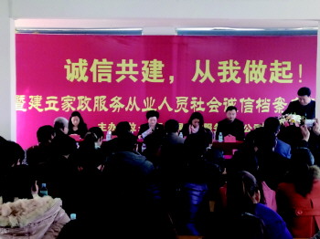 15日上午,菏泽市诚信建设促进会举办“诚信共建,从我做起”暨建立家政服务从业人员社会诚信档案启动仪式。今后家政服务从业人员的个人信息,客户认可程度,培训机构,所有证书以及服务经验均可在第三方监督保存,并供市民查询。据介绍,第一批家政服务从业人员诚信档案正在建立当中。 本报记者 陈晨 摄影报道