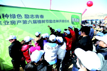 15日上午,日照兴业房产第六届植树节暨励志林营建活动成功举办。200余名励志青年和兴业房产以及本报工作人员,齐聚五莲县户部乡龙潭湖水库附近的山坡,种下象征生命、绿色、青春、励志的3000多棵小树。 虽然活动当天有大风,植树现场尘土飞扬,但这丝毫不影响励志青年们的种树热情,反而让参与人员对植树造林有了更深刻的认识。 组团报名励志青年 又组团参加植树活动 15日早晨8点半,日照兴业集团财富广场前已经聚集了众多参加植树活动的励志青年代表。他们有的拿着水桶,有的拿着铁锨,期待着能赶紧到达植树现场。 参与本次活动的励志青年有很多都是组团报名的。日照创业青年俱乐部将近20人此前组团报名了“寻找日照最励志青年”活动,本次植树活动,他们又组团参加。一些成员都是自备工具,甚至自驾前往。 “植树节当天是正常工作日,大家都上班没有时间植树,今天是周末,我们就组团来补上了。”日照创业青年俱乐部副秘书长赵坪说,植树造林、绿化家园是每个人应尽的义务,励志青年更是义不容辞。据介绍,俱乐部成员李伟等人还专程从岚山赶来参加植树活动。 记者了解到,日照市义务工作者联合会、日照港铁运公司、日照凯德广场、天翼飞young俱乐部等单位或组织都组团报名参加了励志青年评选活动,本次植树活动,他们也都放弃周末休息的时间,踊跃报名参与。 四辆大巴满满当当 励志青年种树热情高 四辆大巴车在济南路北侧一字排开,在工作人员的引导下,参与人员陆续上车。上午9点整,四辆大巴坐得满满当当,车辆准时出发,开往五莲县户部乡龙潭水库附近。 经过40多分钟的行驶,车辆到达目的地。日照兴业房产的工作人员大清早就赶到了这里,搭好了启动仪式的舞台,准备好了植树工具。而远处的山坡上,则插满了彩旗,划出植树的区域。 下车之后,励志青年们先是在签名墙上签名,然后在工作人员的引导在,在舞台下站成三队参加启动仪式。齐鲁晚报、兴业房产、励志青年三面大旗迎风招展。 9点50分左右,启动仪式正式开始。日照兴业集团常务副总裁、兴业房产总经理赵文强,五莲县户部乡党委书记陆德志、励志青年代表翟文伟等四人分别致辞。 最后,四人同时剪彩,翻转四块连在一起带图案的木板,原本的“荒漠”图案变成了“森林”,日照兴业房产第六届植树节暨励志林营建活动正式启动。 据了解,兴业房产植树节已连续成功举办了五届,每年都有不同的主题,今年第六届的主题是“播种绿色、励志青春”。将“励志”的元素融入低碳环保的公益行动,赋予了“播种绿色”更为深远的意义。 启动仪式结束后,所有参与人员分成两队,在工作人员的带领下,前往北侧的荒山进行植树。记者看到,这片山坡大面积黄土裸露,梯田上种着小麦,绿油油的,稍显生机。 当天天气晴朗,但时有大风,风吹过,尘土飞扬,黄沙漫天。参与植树的人员的脸上和衣服上都沾满了一层尘土。但这丝毫没有影响大家植树的热情,反而让参与人员对植树造林有了更深刻的认识。 据了解,15日一大早,兴业房产的工作人员就已将3000多棵松树苗和植树工具运到山上,两辆水车也准备就位。 励志青年们上山之后便两三人一组,有扶树苗的,有挖坑的,有浇水的,自发合作植树。放眼望去,漫山遍野都是励志青年忙碌的植树身影。 植树近两个小时后,原本荒凉的山坡立马有了生机,变得绿意盎然。 “今天真是接地气了,平时都待在市区,住在楼上,根本体会不到植树造林的紧迫感,今天这一刮风,确实感觉应该多多植树造林。”一位励志青年说。