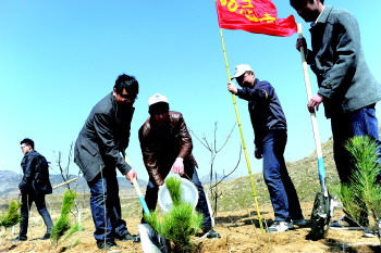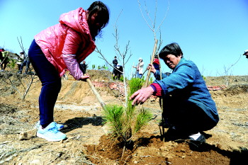 |  | 附近的村民也参与到绿化家园的队伍中来。